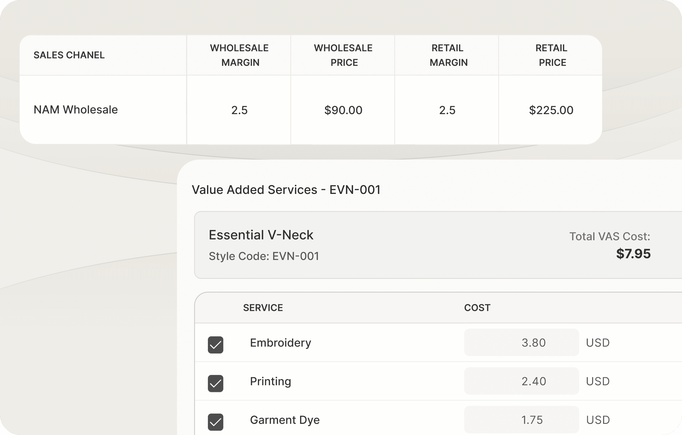 Build profitability into your design process. Kobo helps you model costs in real-time as styles are developed, helping you to make informed decisions that protect your margins without compromising your vision.