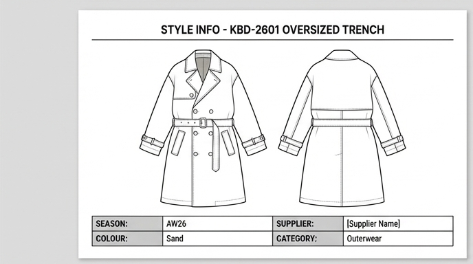 ![]() | KBD-2601 | Oversized Trench "Nomad" | Sand | Sand | AW26 | Bali Garment Works | Sampling | ||