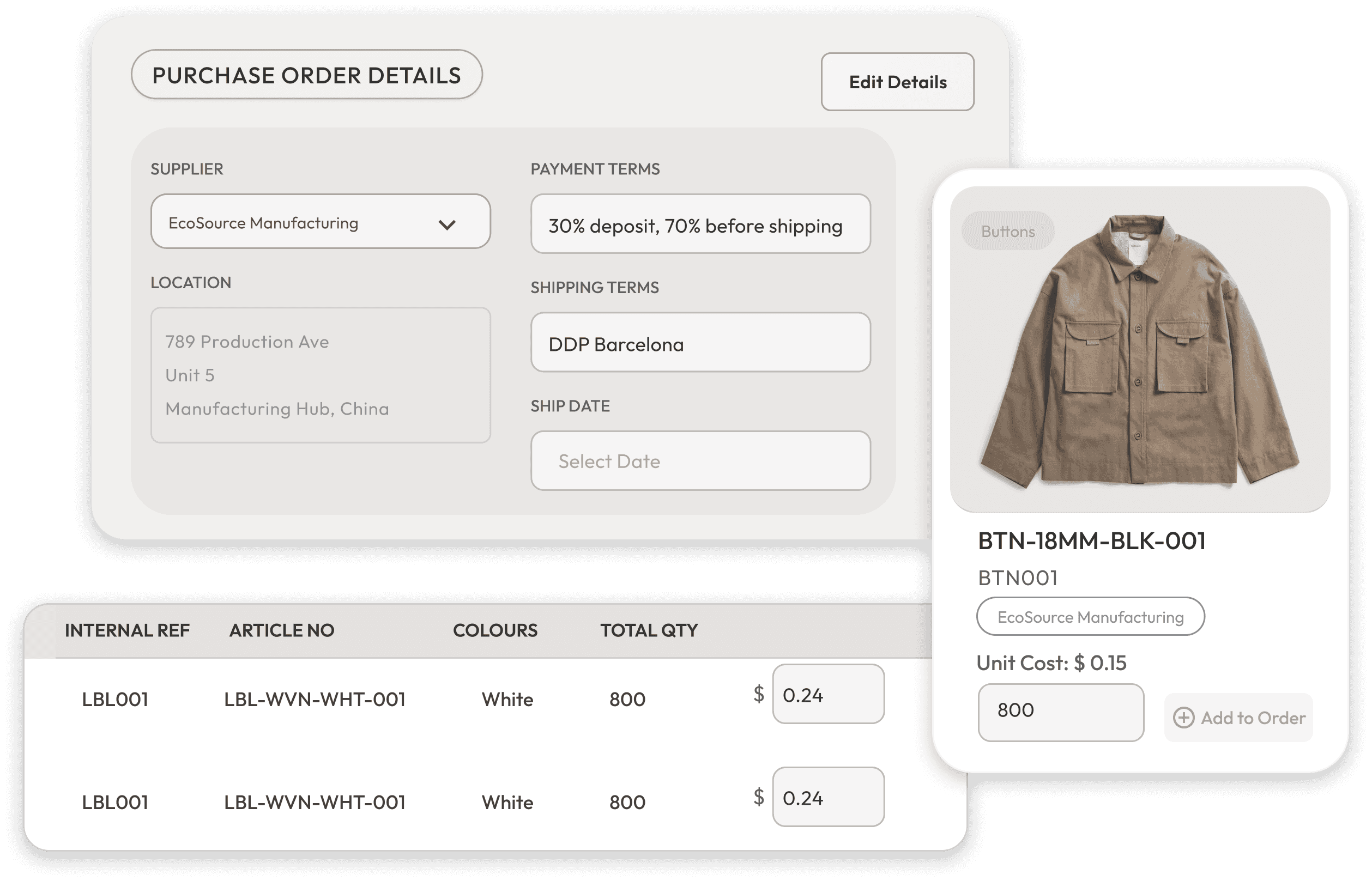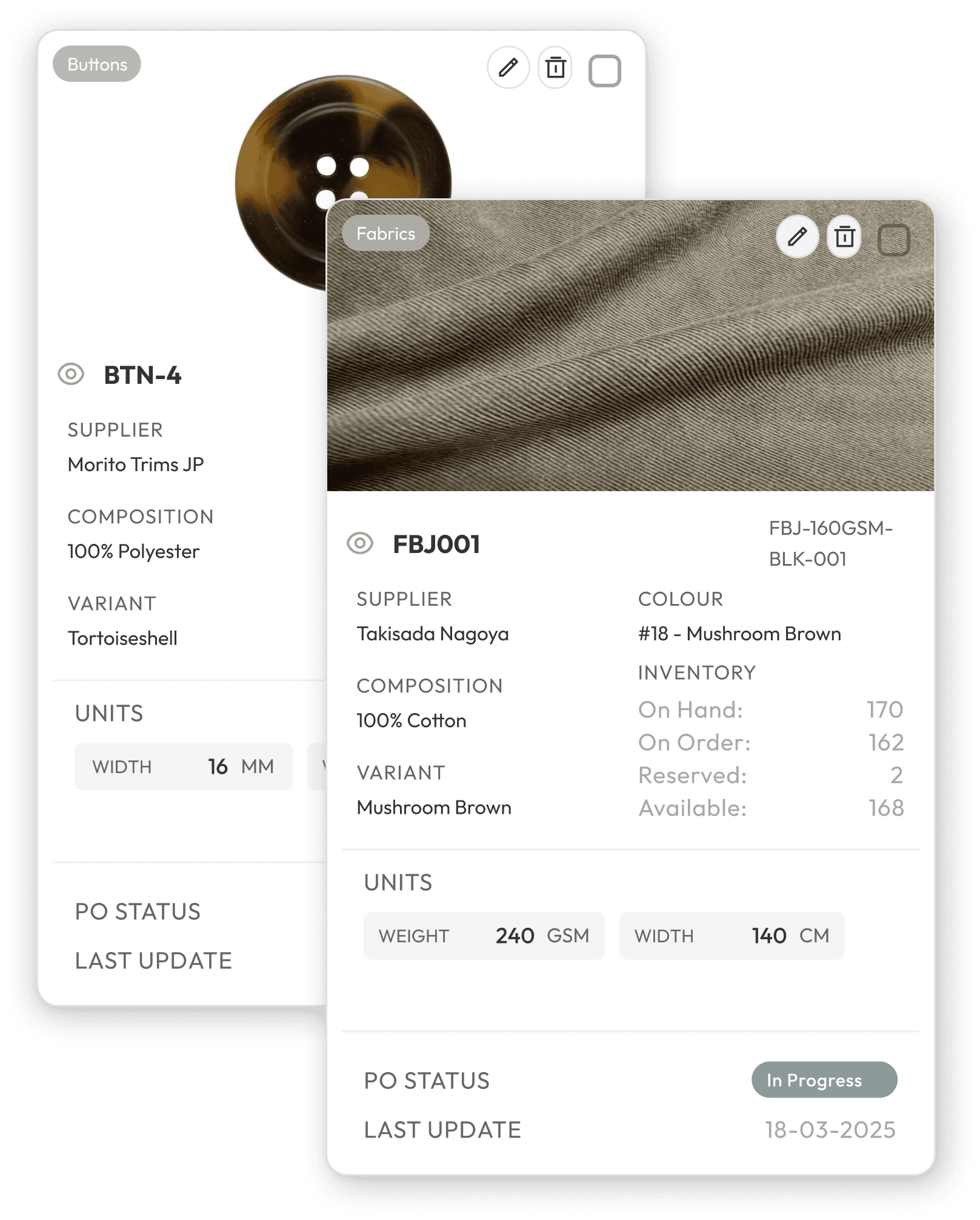 Unify and centralize all fabric, trim, and component details.