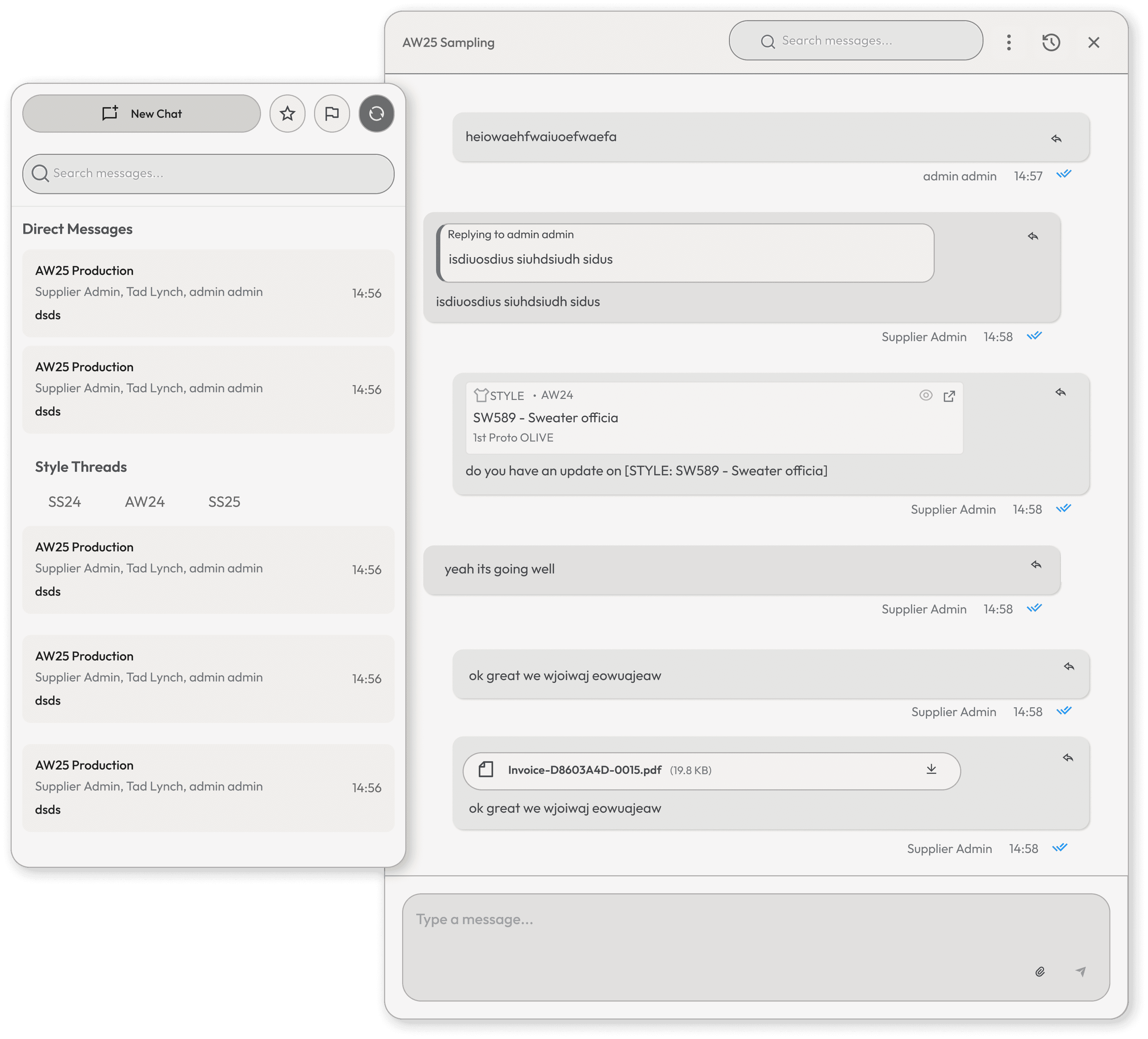 Replace scattered emails and messages. Collaborate directly on styles, tasks, and orders in one place.